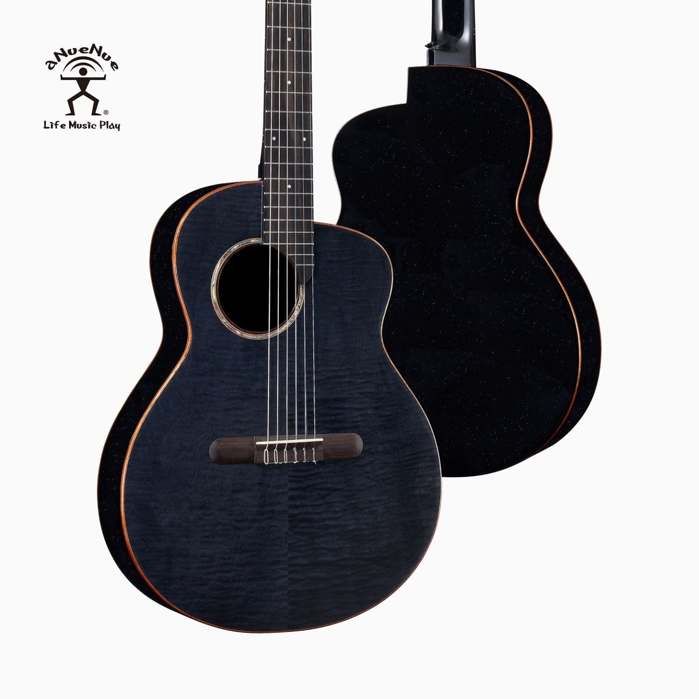 aNueNue LN77E Black Flamed Top Thin Body Stage | Nylon Guitar